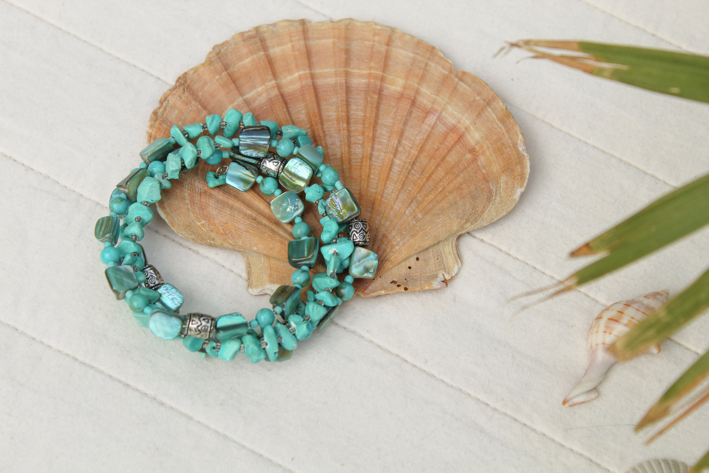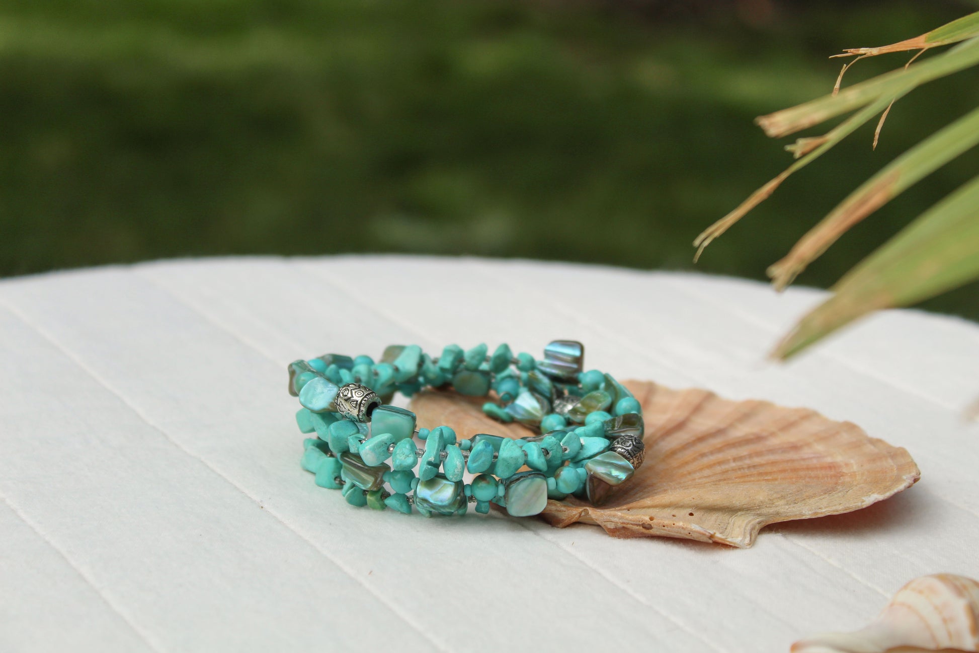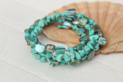 Turquoise stone wrap bracelet (or arm cuff), with tiny silver details