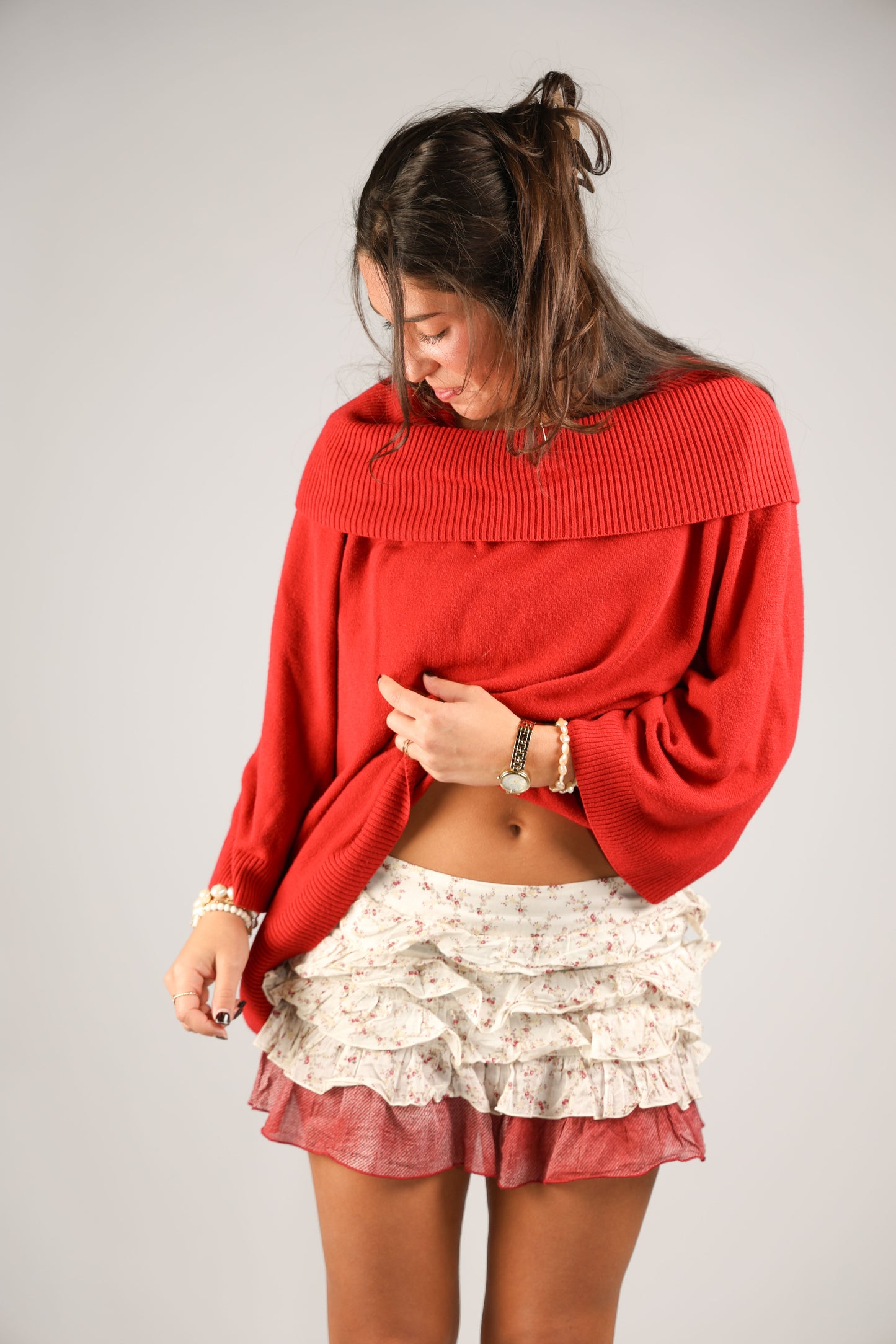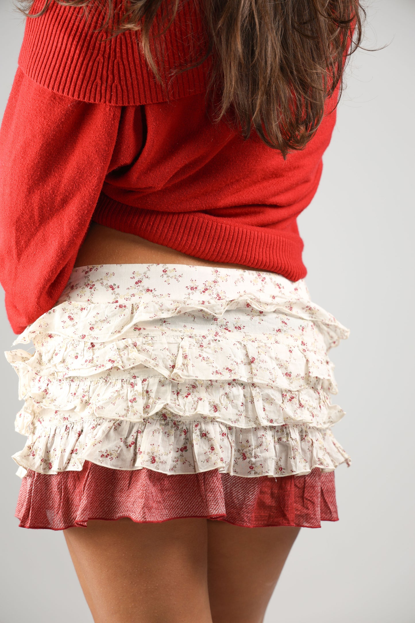 Mini ruffle skirt with red floral details right from an Italian market!