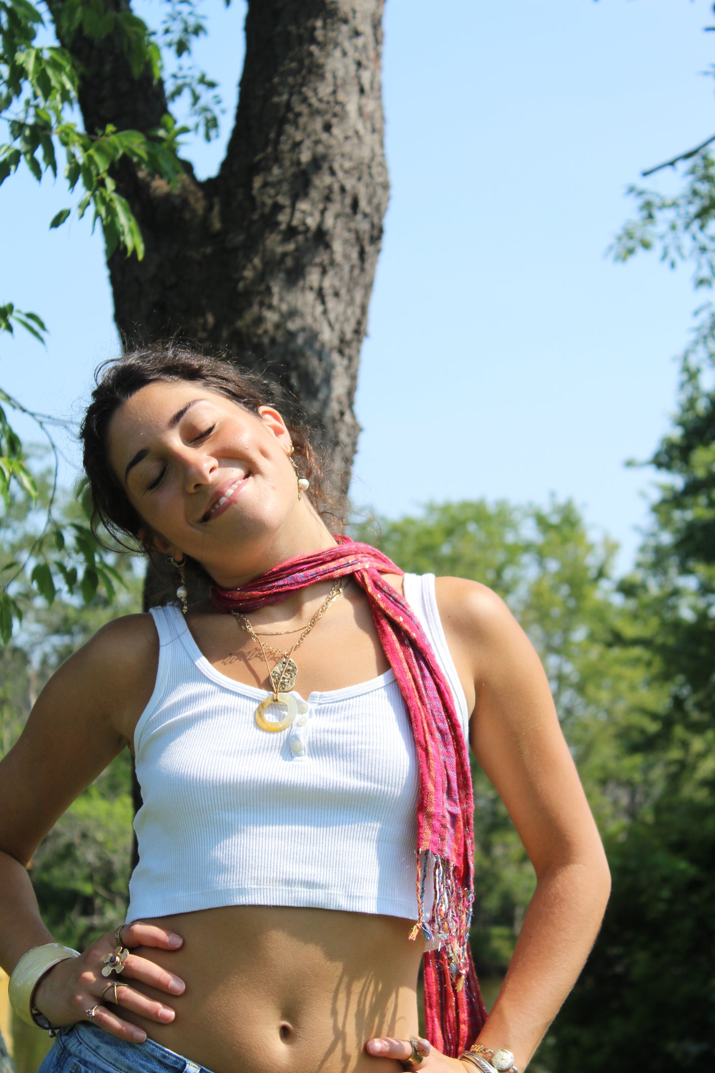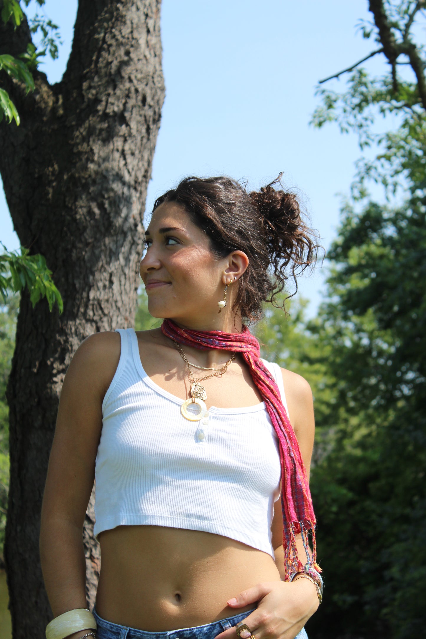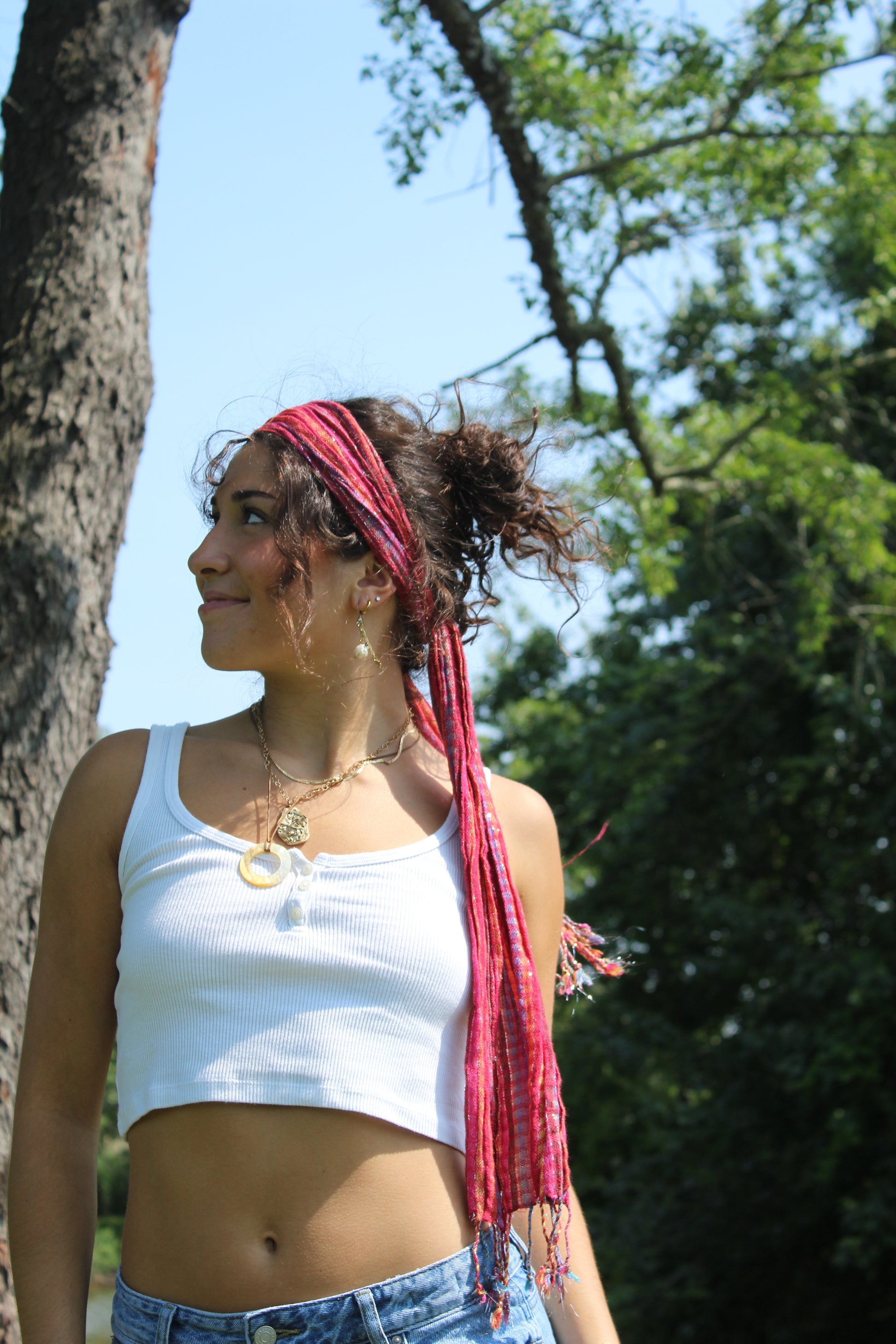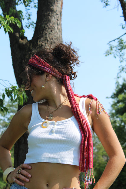Fun pink scarf with fringe ends, so versatile!