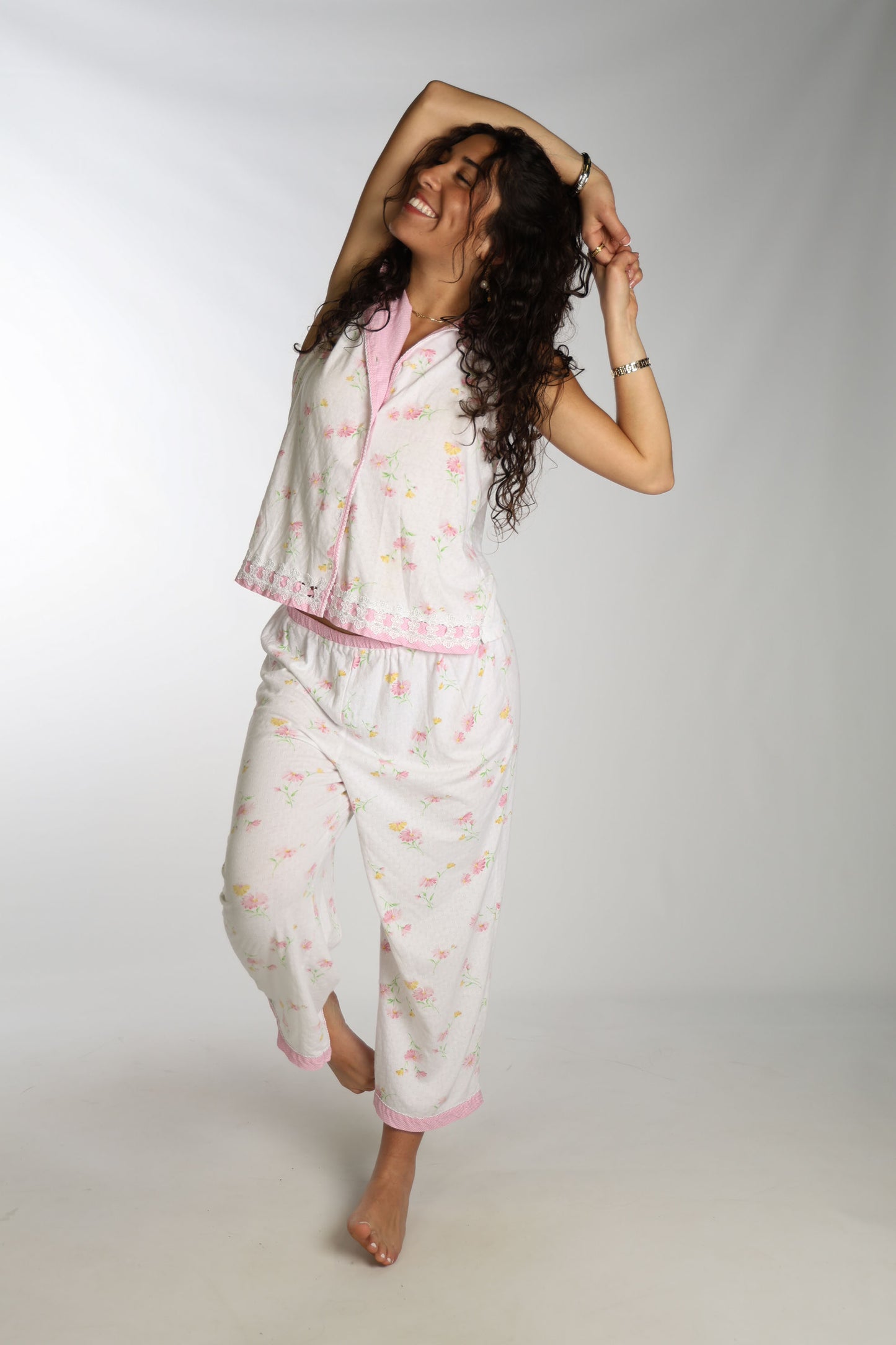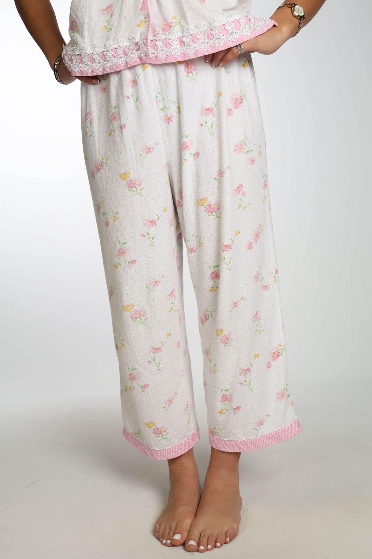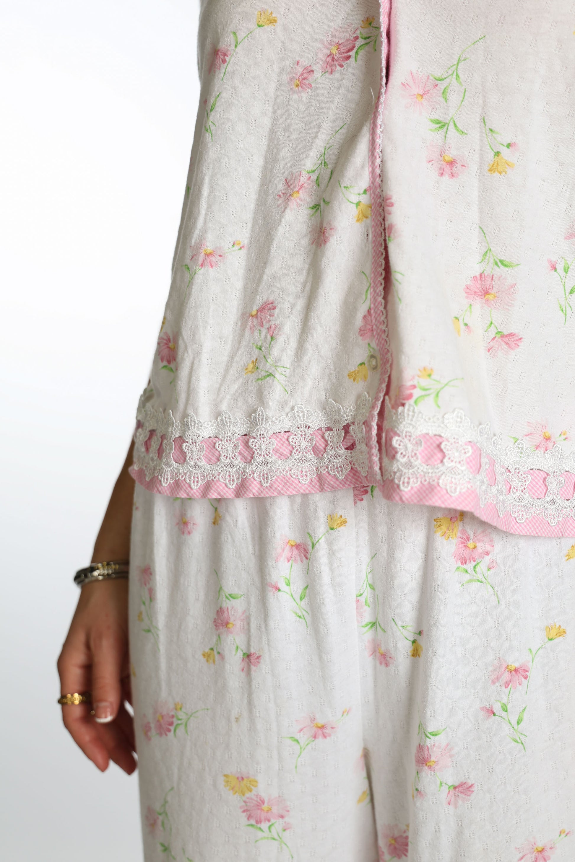 Soft and dainty pj set with pink floral and lacy details!