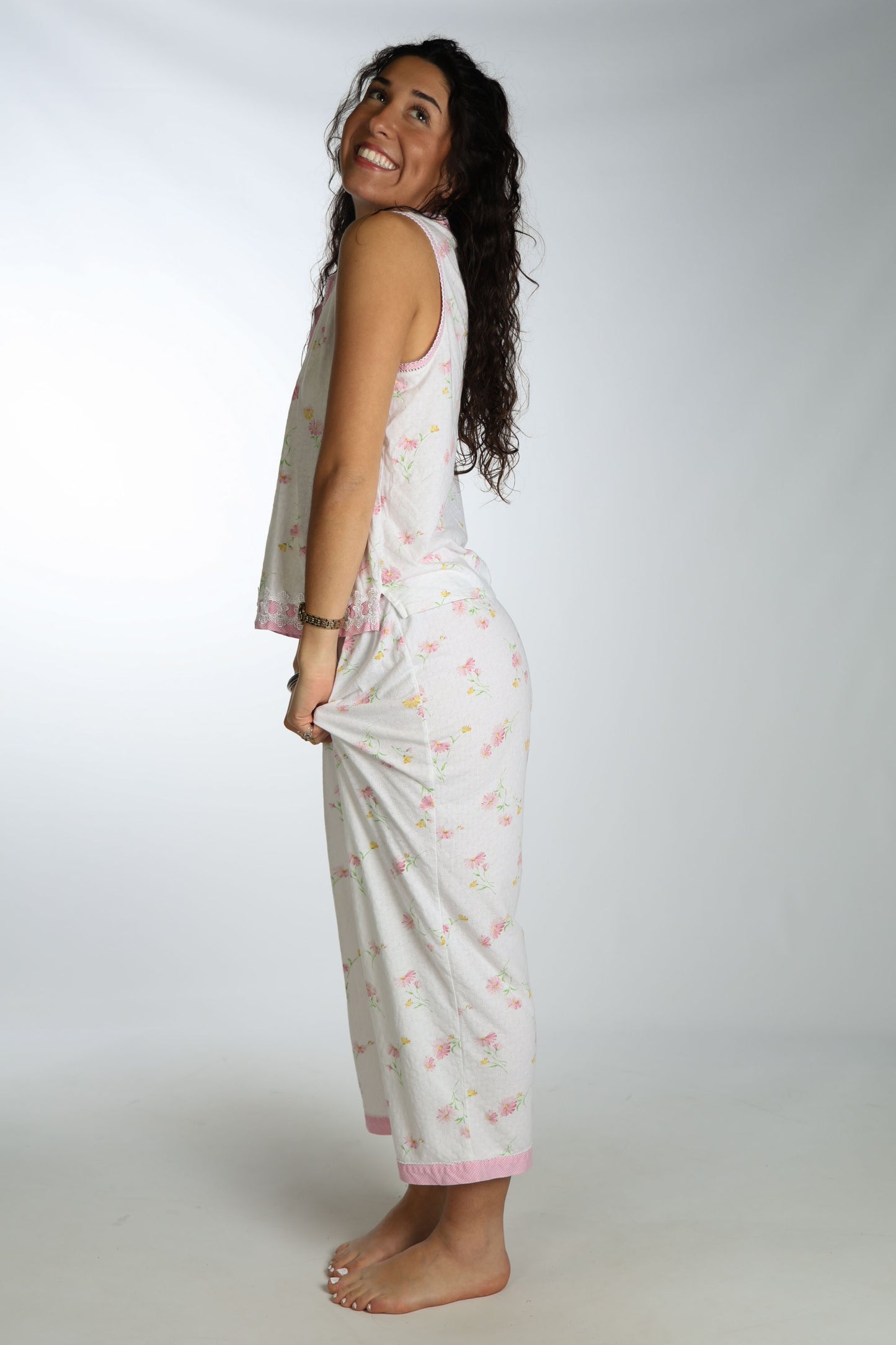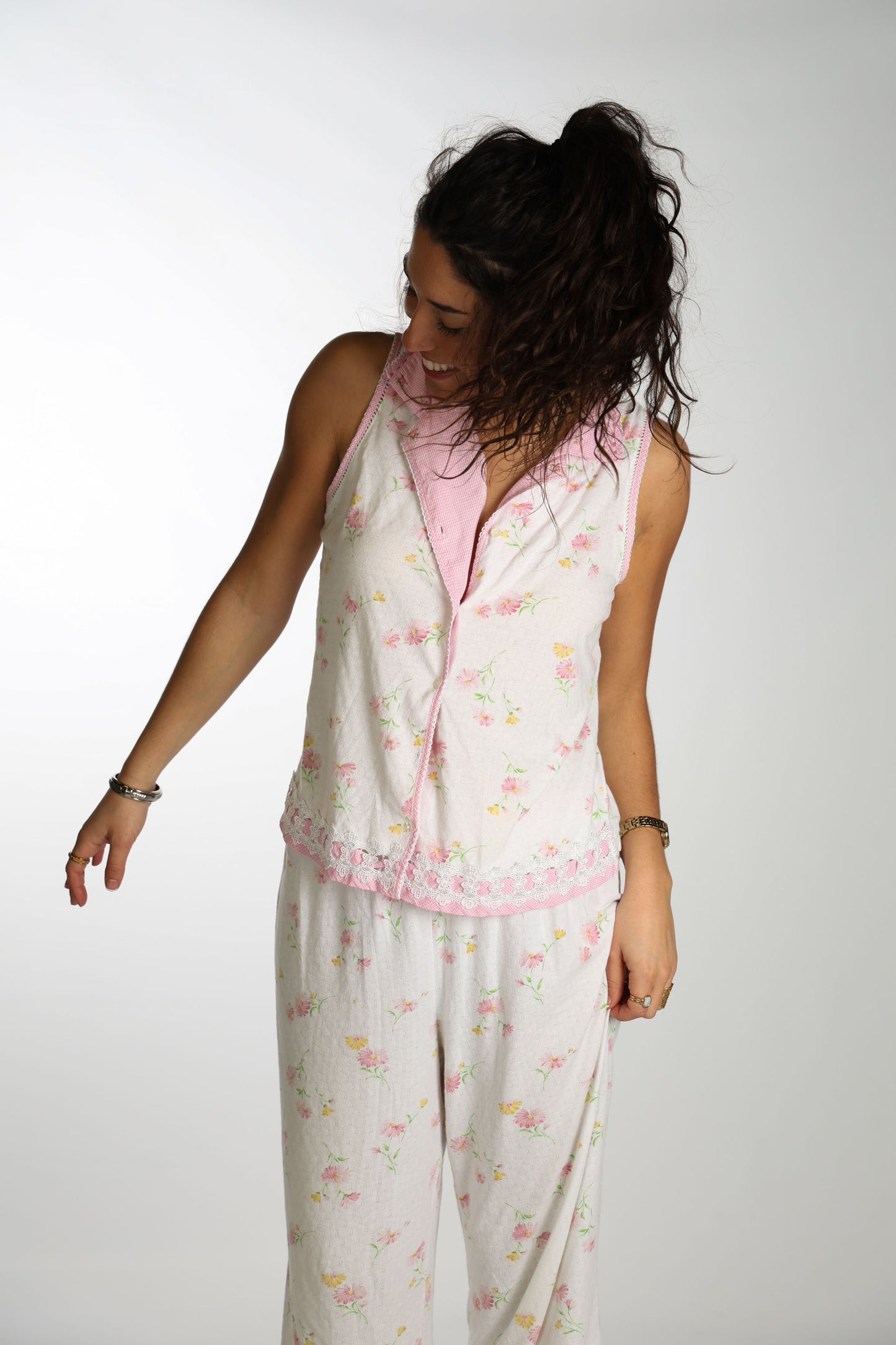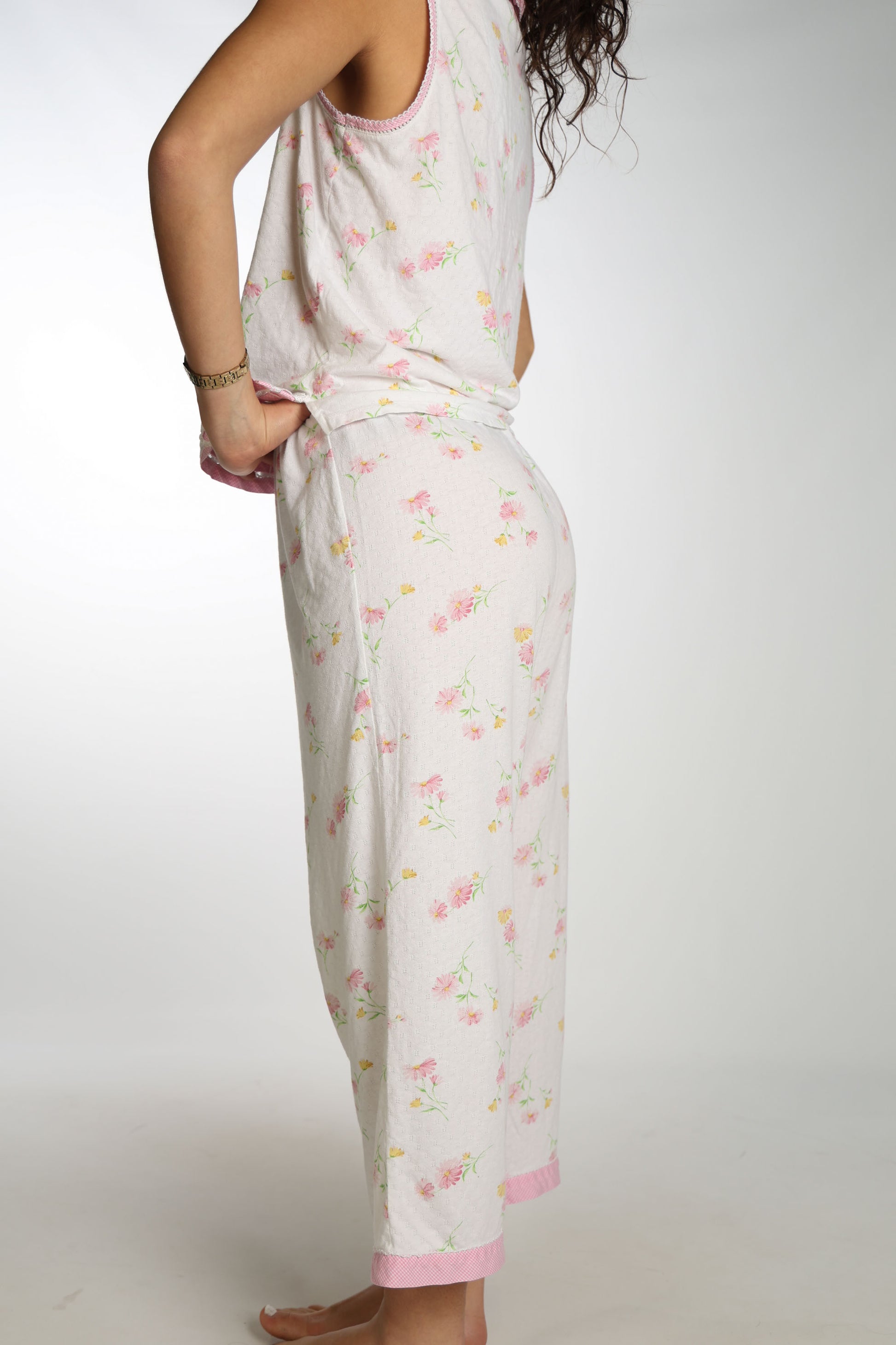 Soft and dainty pj set with pink floral and lacy details!