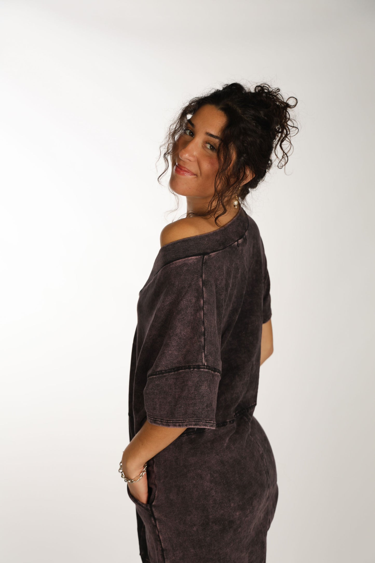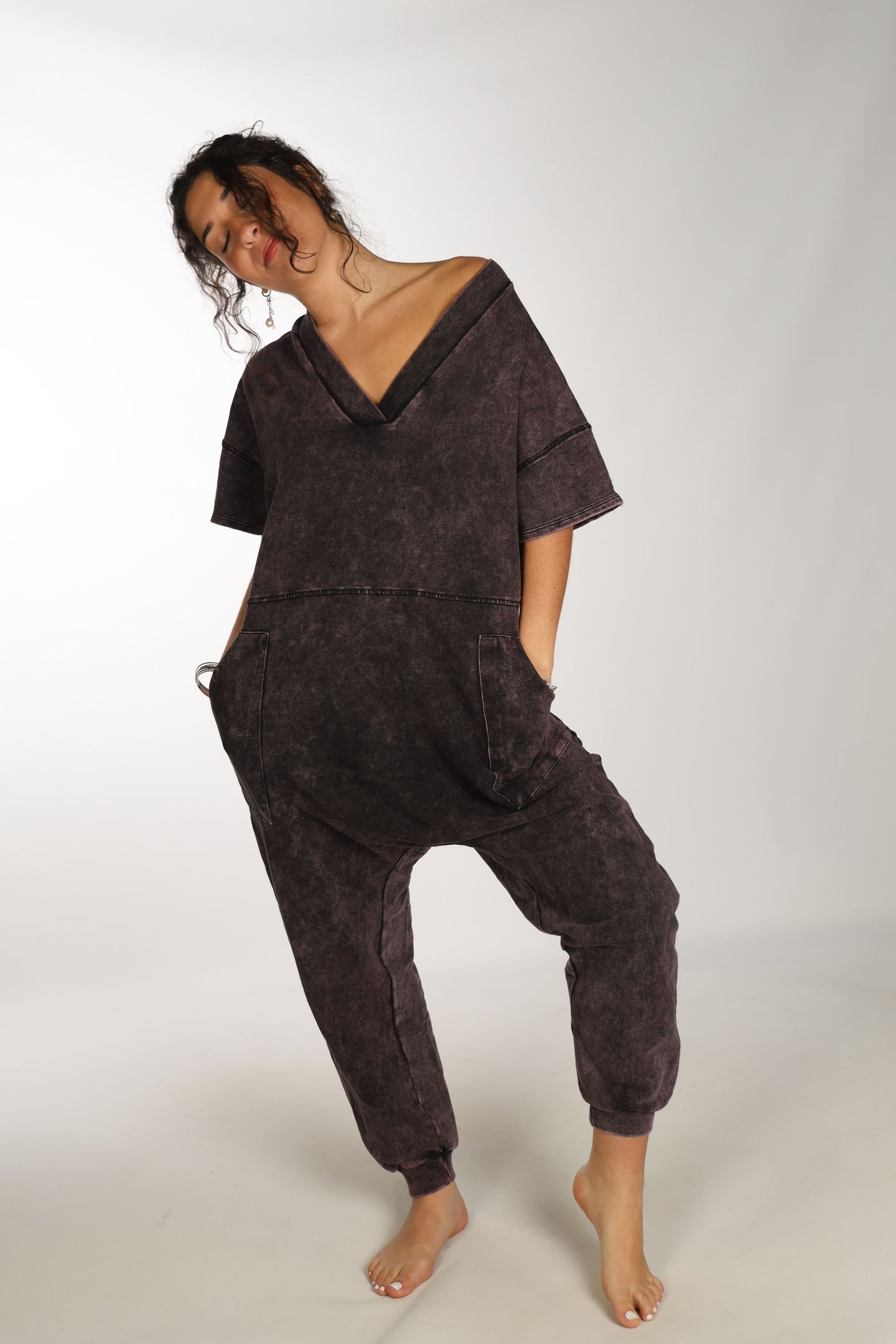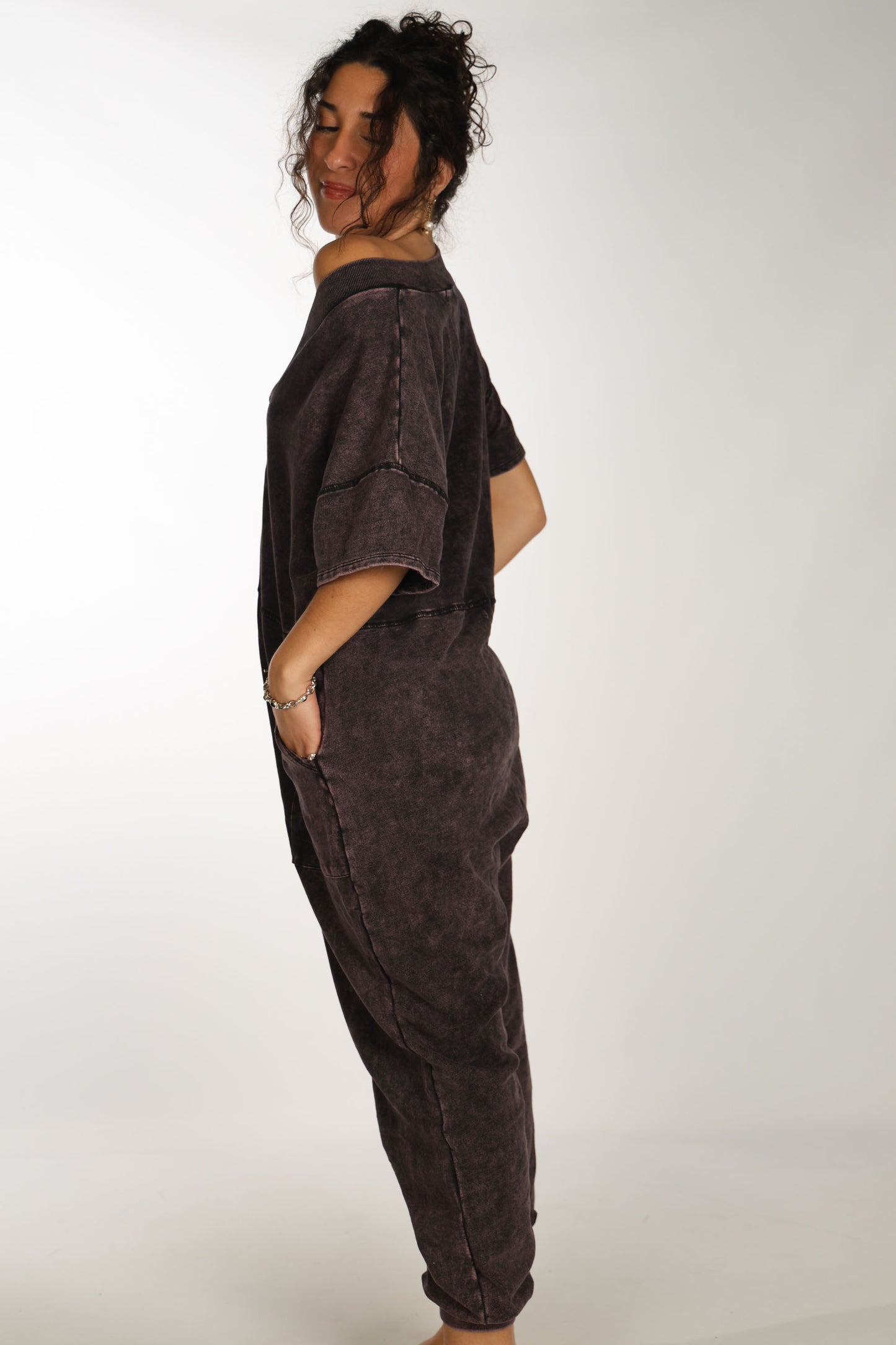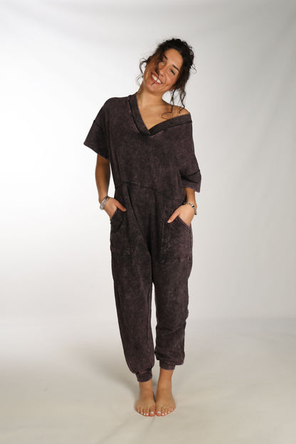 Comfy cozy sweat jumpsuit, purpley/worn wash