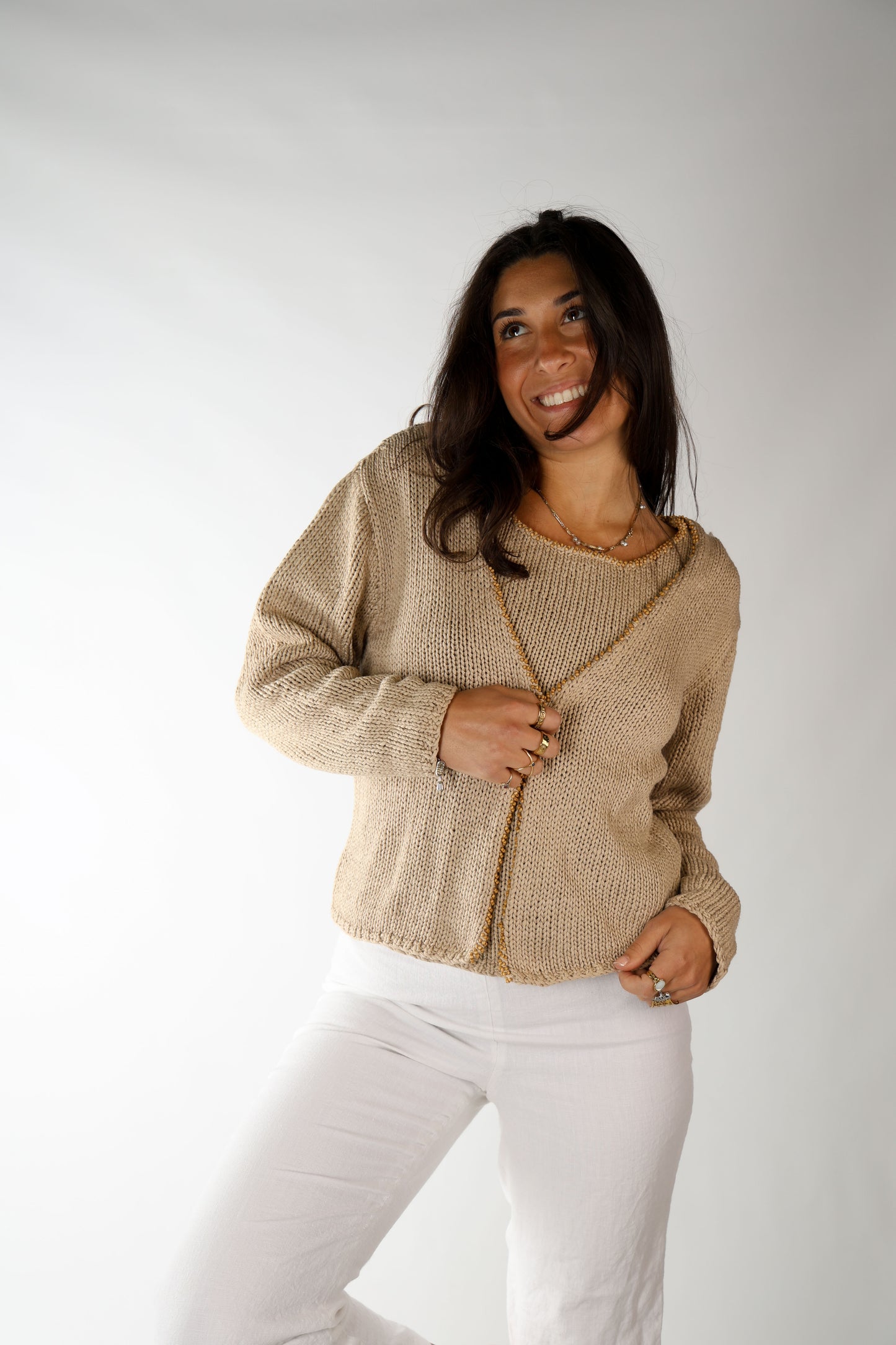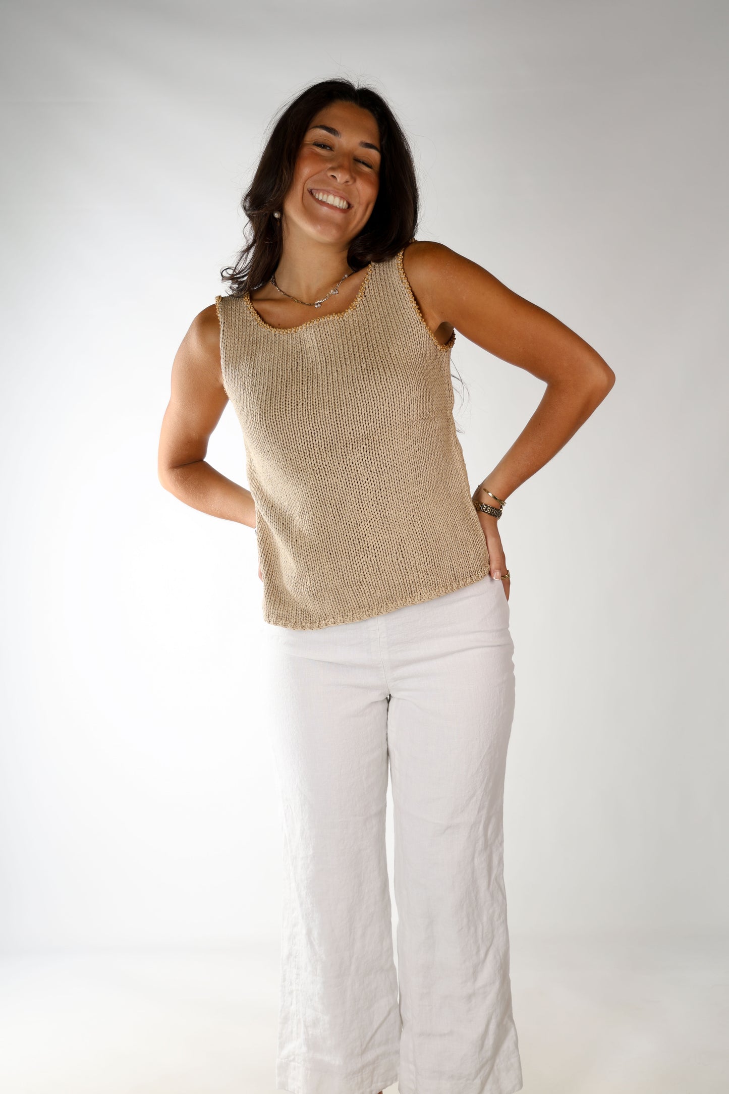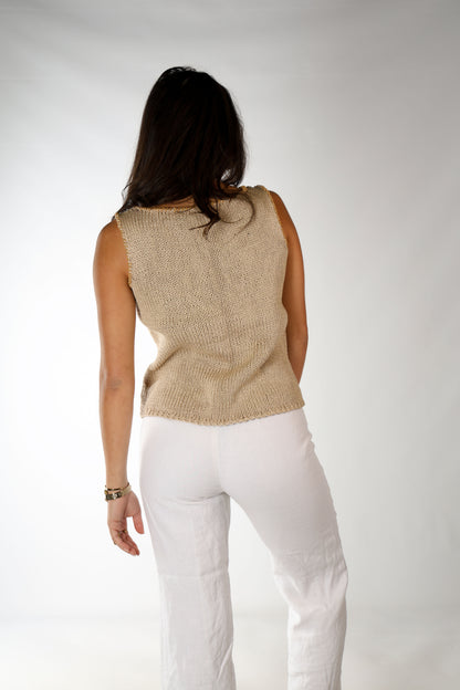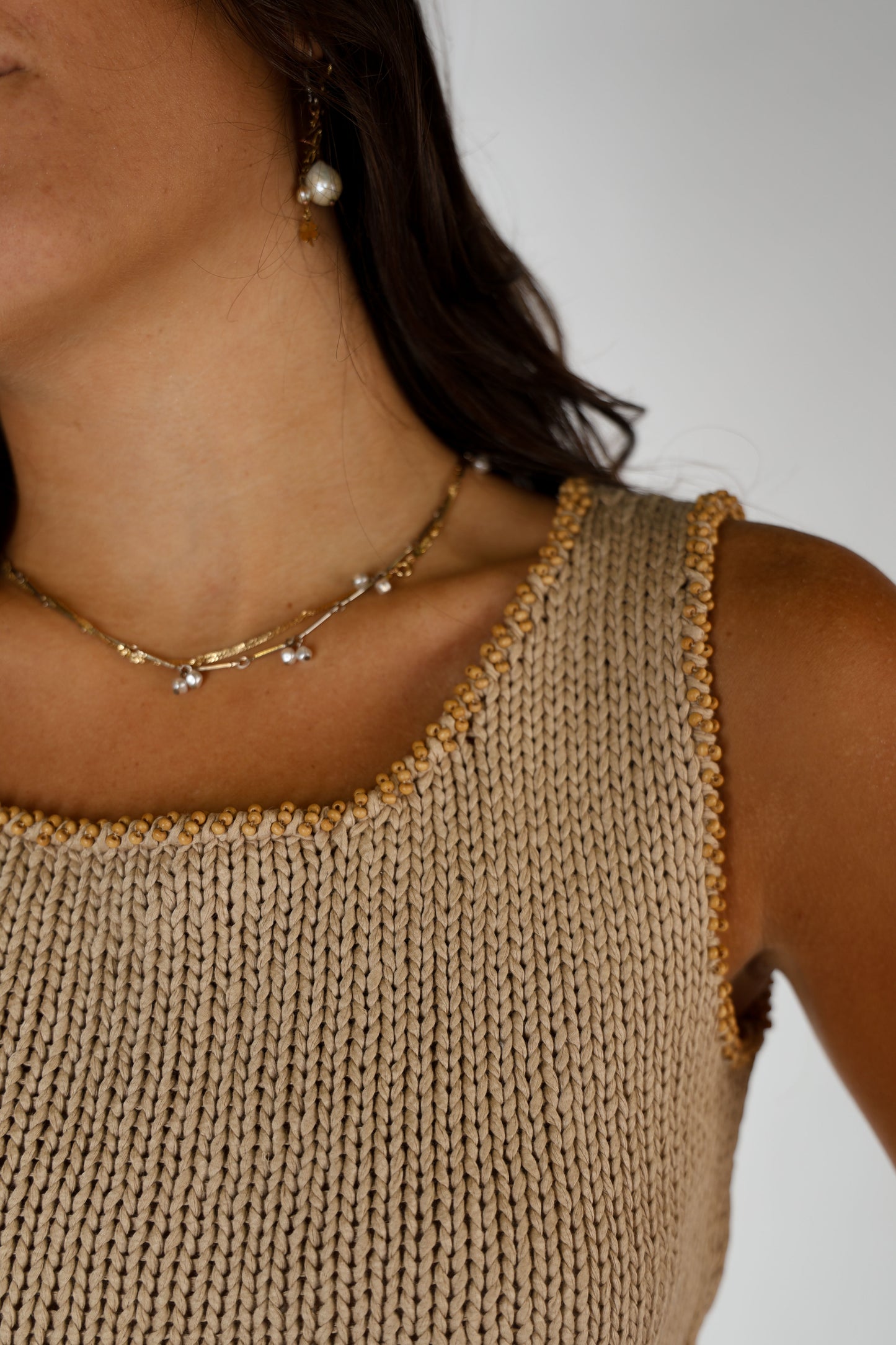 Thick knit tan tank with beaded neckline (and matching cardigan!)